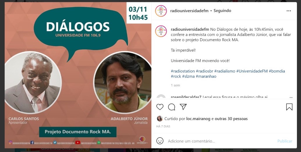 Carlos Santos entrevista o jornalista Adalberto Júnior, sobre o projeto Documento Rock MA