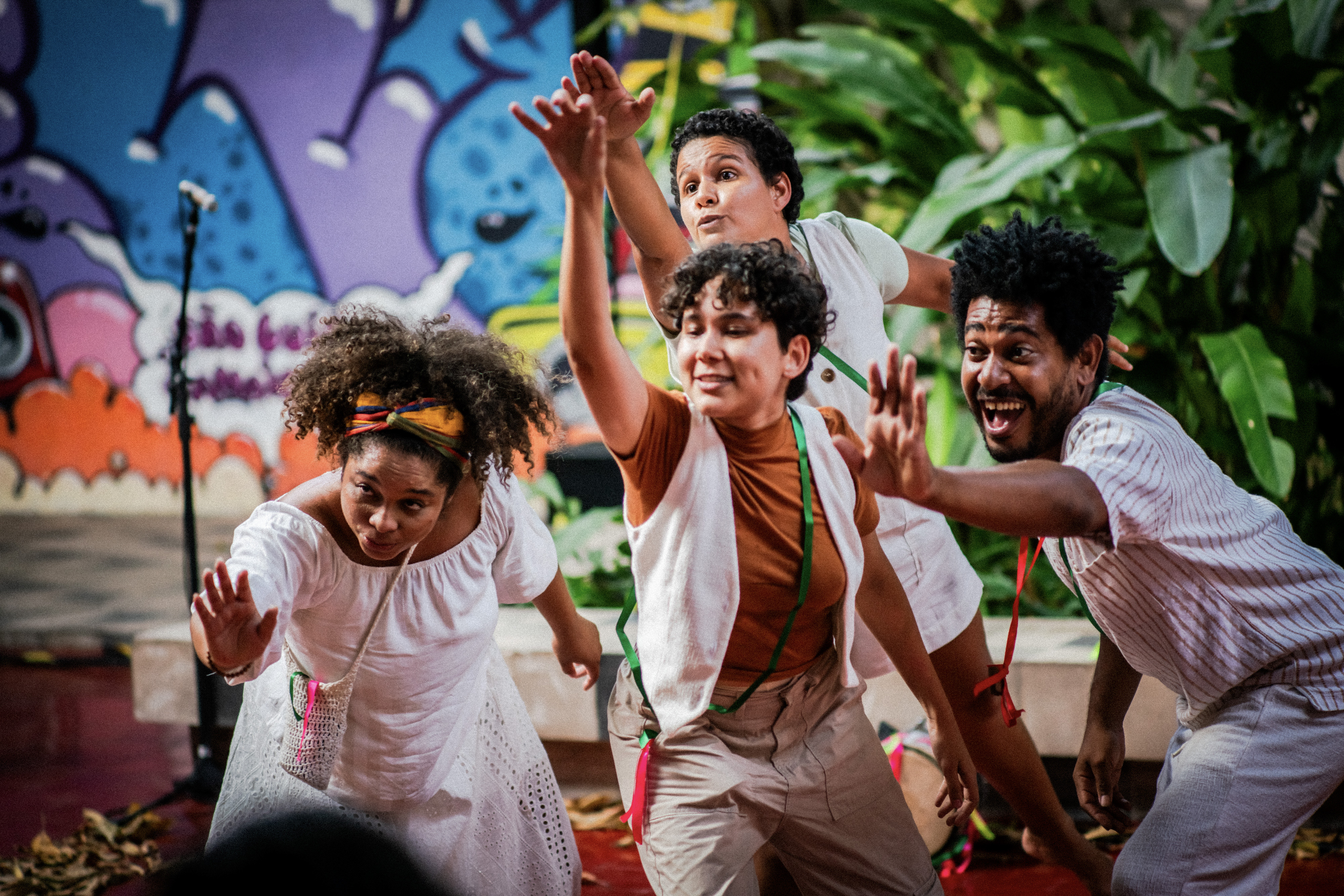 “Durante o processo, a gente fez pesquisa de campo, a gente precisou ir na sede do Boi da Floresta, acompanhar algumas manifestações culturais, como a capoeira, o tambor de crioula, para a gente alcançar esse corpo maranhense que conta essas memórias. Então, algumas pesquisas de campo aconteceram para que uns procedimentos dentro da sala de ensaio se concretizassem em relação ao corpo. Então, eu estou sempre lidando com duas camadas de pesquisa, de metodologia. Uma de uma pesquisadora que tem que escrever uma tese, mas a outra de uma pesquisadora que tem que dar conta de uma encenação”, diz, a autora.